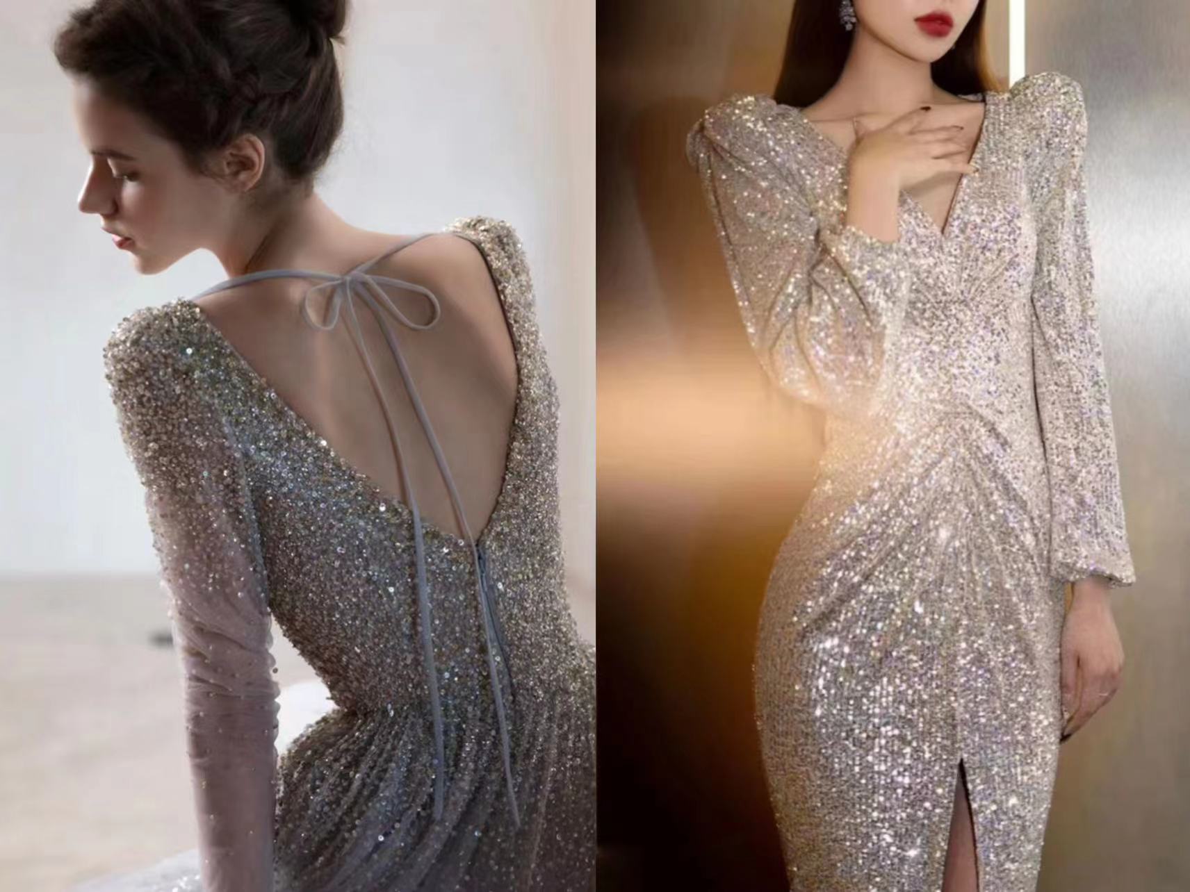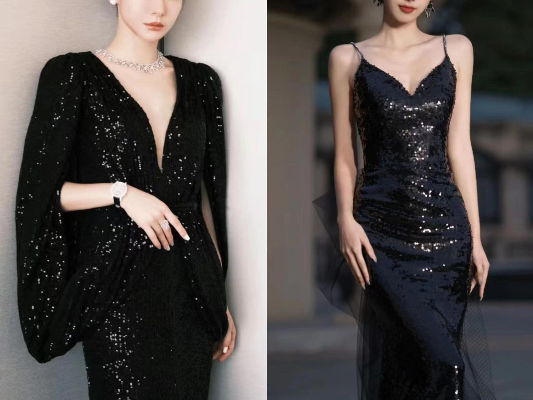 年会服装里最出挑的材质怎么少得了亮片呢?它就像行走的小太阳,走到哪里都可以点亮全场。不过一般人想要驾驭可能还需要点小心思的,一不小心就容易显得用力过猛。