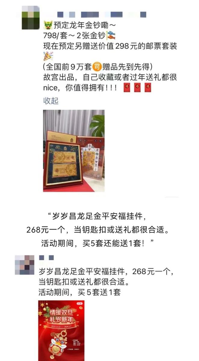 近日,我们在微信朋友圈发现,多位银行工作人员在卖力推销龙年生肖贵金属系列产品。