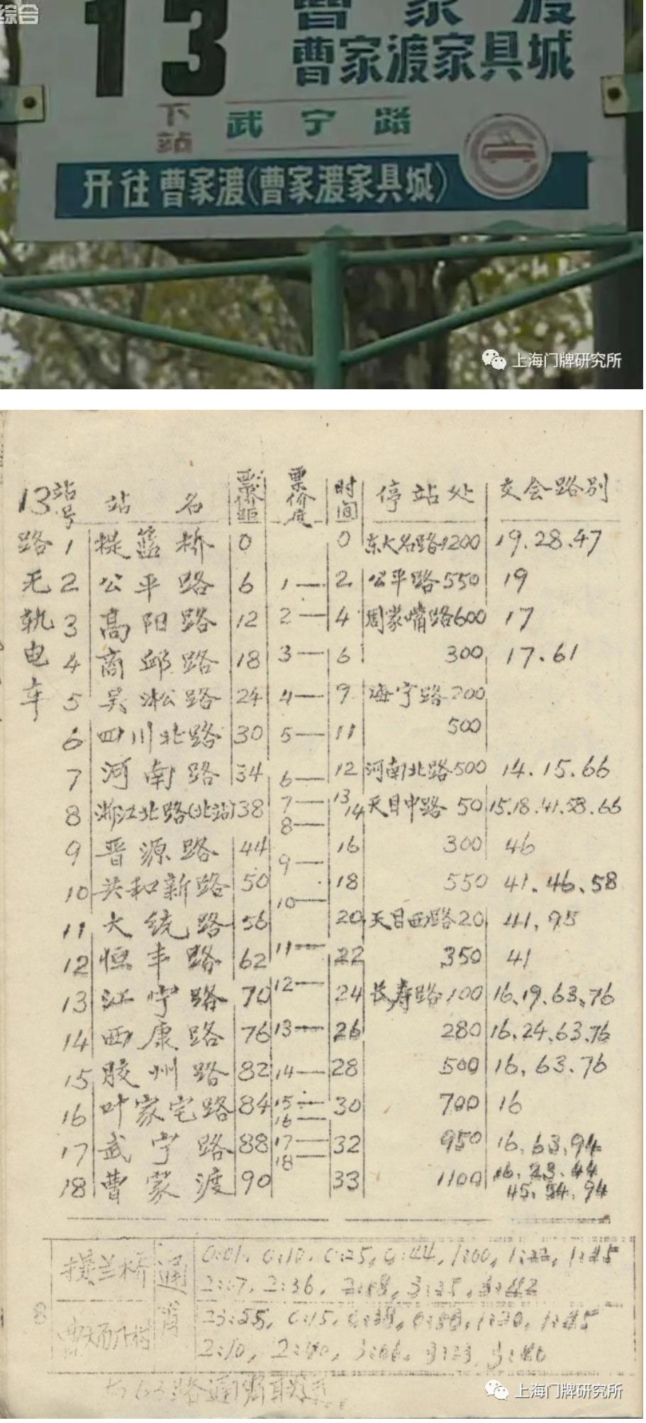 1960年10月8日,电车二场开辟13路无轨电车线路,自提篮桥至曹家渡,线长9.938公里,取代72路公共汽车。13路电车几乎走完了普陀区最主要的商业街道——长寿路的全部路段到达曹家渡,加强了沪东与沪西间直达交通。
