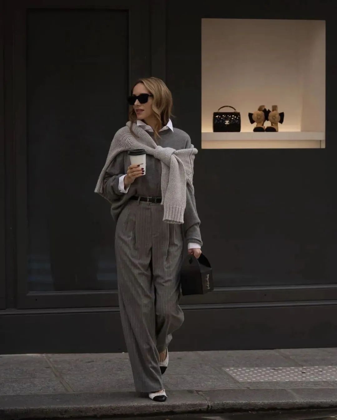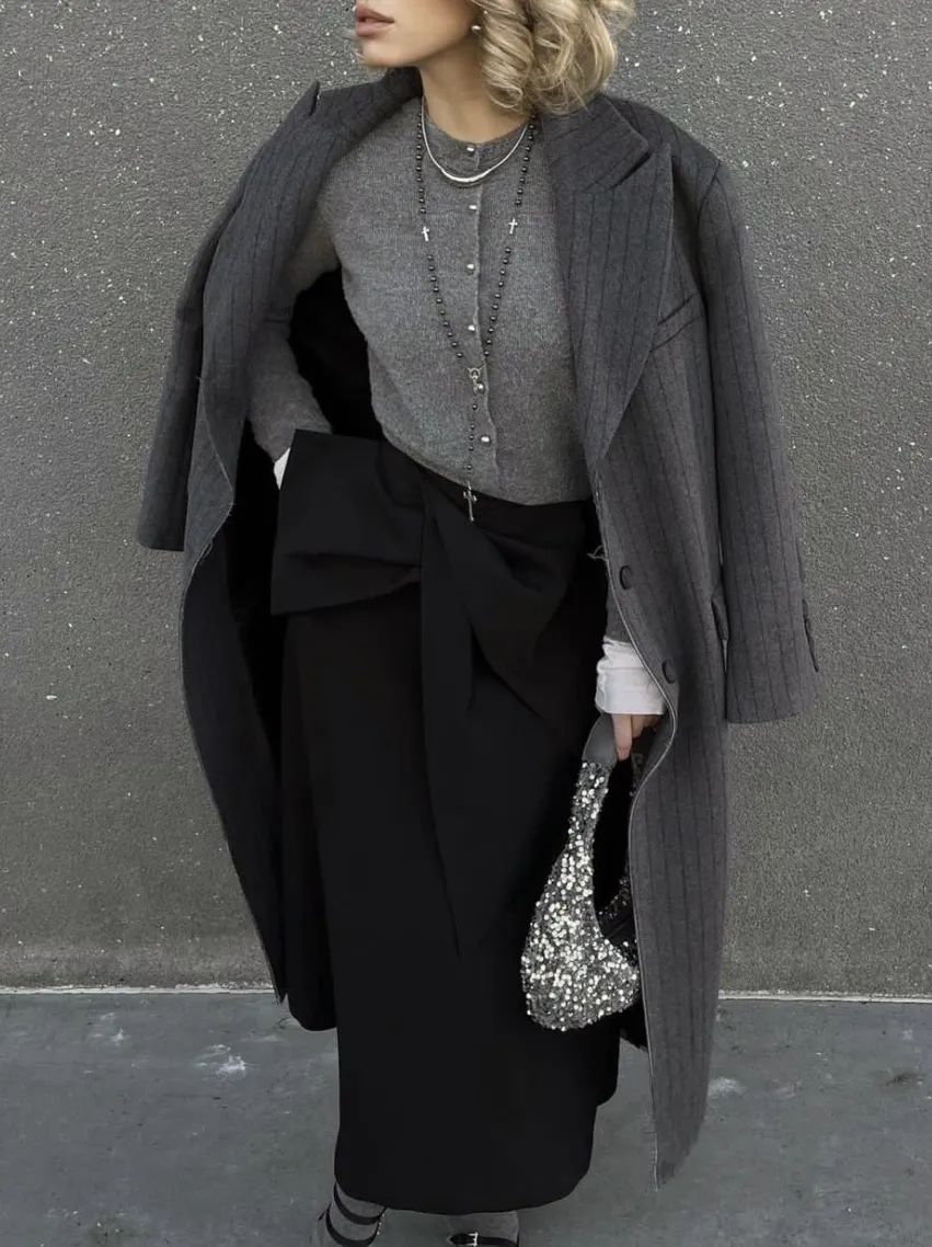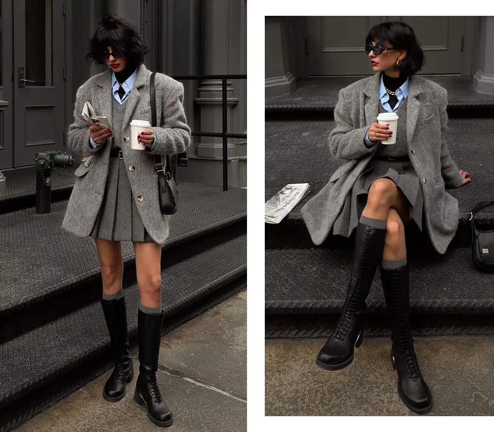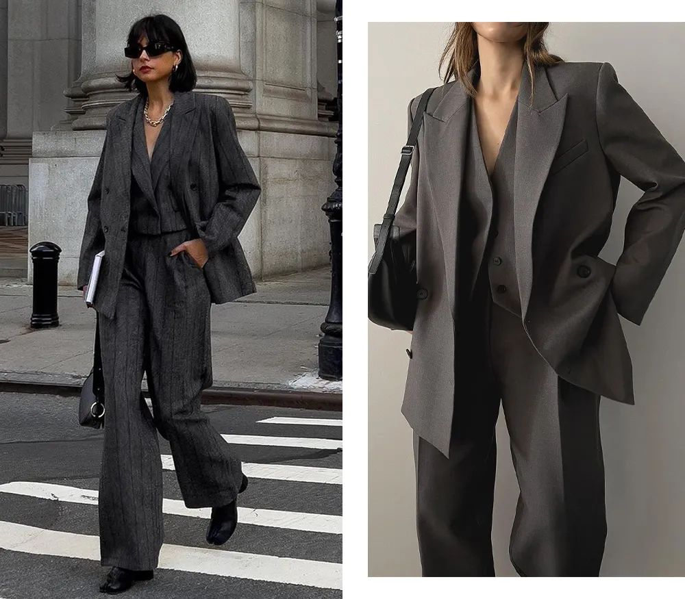 深一点的灰色自带一种沉淀感,偏冷硬的气质,自带职业感,很适合走优雅的知识分子风或老钱风。