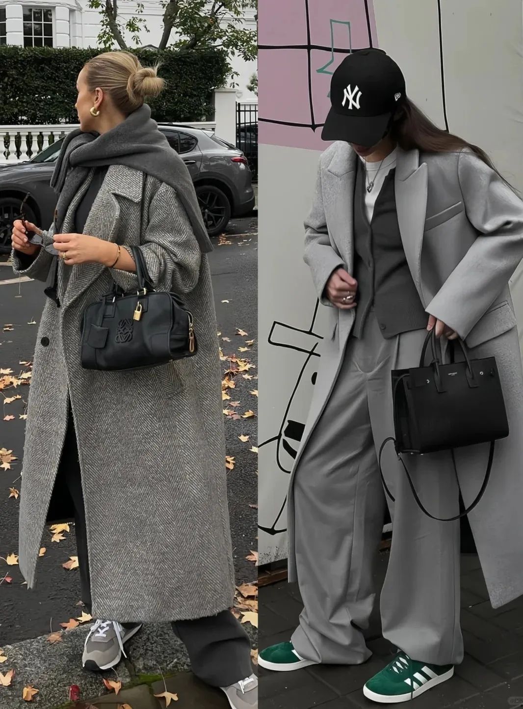 首先是最不费脑子的,直接选一模一样的颜色穿上身。这里搭配的重点就是对灰色深浅的把握,会决定整体的风格和气质。