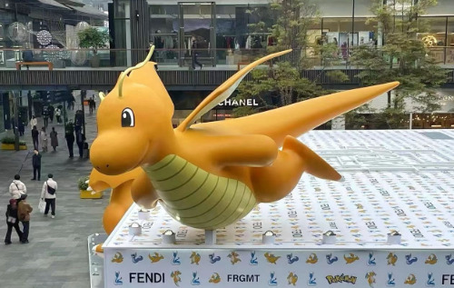 在成都太古里商圈,巨大的快龙充气玩偶吸引了很多游客前去打卡,这样的跨界联名也吸引了无数游戏玩家和动画迷关注。