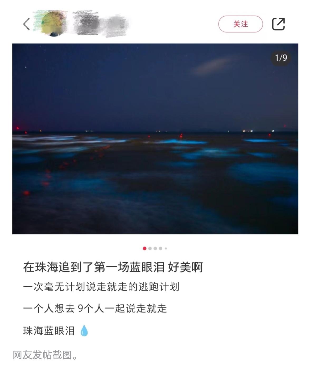 自然资源部南海生态中心高级工程师易斌介绍,“蓝眼泪”是一种海水发光现象,本质是夜光藻大量增殖形成赤潮,在夜晚受到扰动等刺激而发出的浅蓝色光的现象,在适合的水温(16℃-24℃)和盐度(25-30的盐度范围)下,在海湾、港口等海水流动性较差的地方,夜光藻容易爆发性增殖并富集,夜晚,在海浪等的刺激下,夜光藻将发出浅蓝色闪亮的光,形成“蓝眼泪”现象,于南海发生赤潮较多的季节为冬春两季(11月至来年5月)。