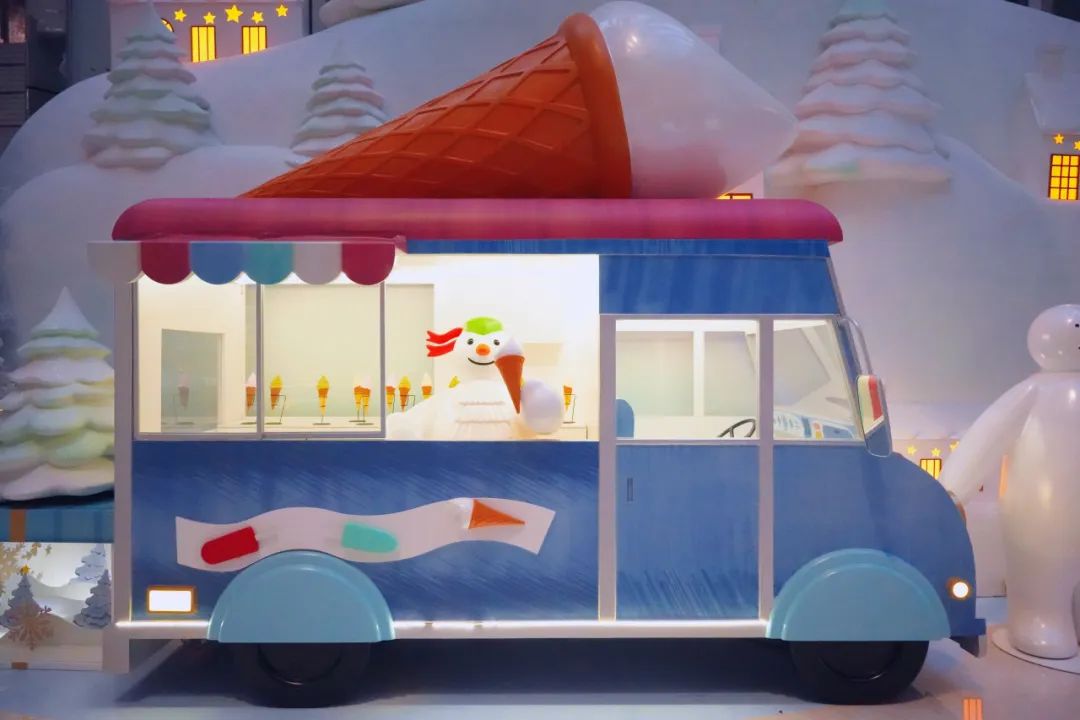 商场外,雪人和小狗昂首阔步地行走在冰面上,身后跟着小男孩,引领着我们前来遨游秘境;商场内,形态各异的雪人憨态可掬,有拿着冰淇淋和我们打招呼的,有“糖果守护者”雪人,还有弹琴的……糖果的香甜、雪人世界的欢笑、治愈的色彩,还有喜庆的龙年装置,满满新春氛围感。