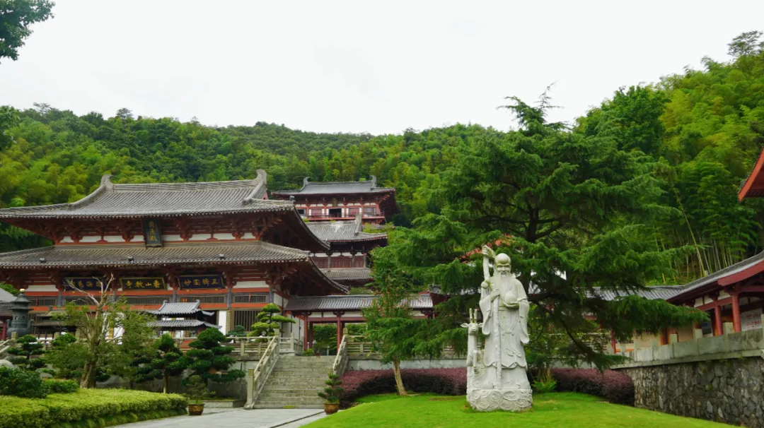 距离油菜花田的车程不远处,有个隐秘在山间的小众寺庙——香山教寺。它坐落于九龙湖风景区,山林与湖泊环绕,既神圣又幽静,是难得的清净之地。这座唐制古刹规模大,建筑层次感强,来此祈福,亦可感受盛唐遗风。