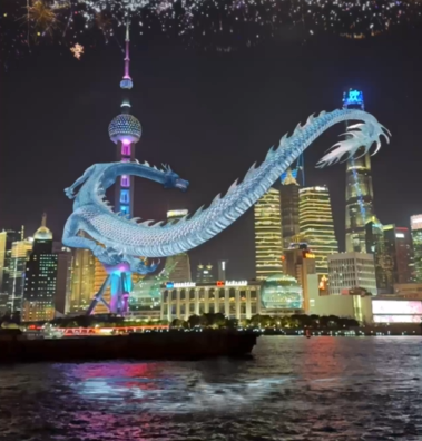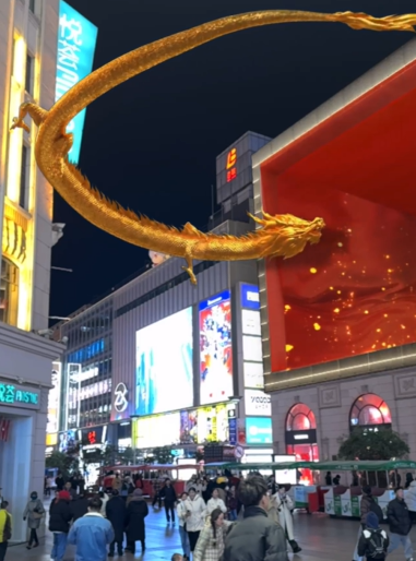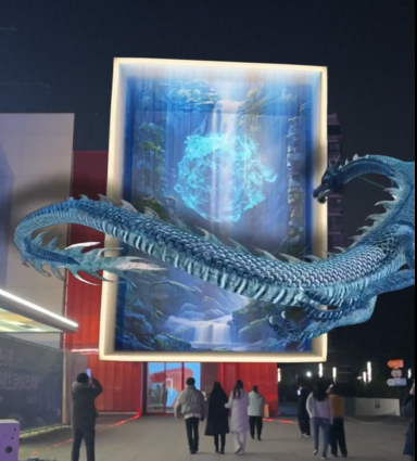五条裸眼3D龙聚首王小慧艺术馆,又飞入中华第一街南京路,飞上外滩黄浦江。中国第一个AR直播间应运而生,在大展开幕时举行现场直播。AR现场直播将成为数字传播的新生代与新宠儿。