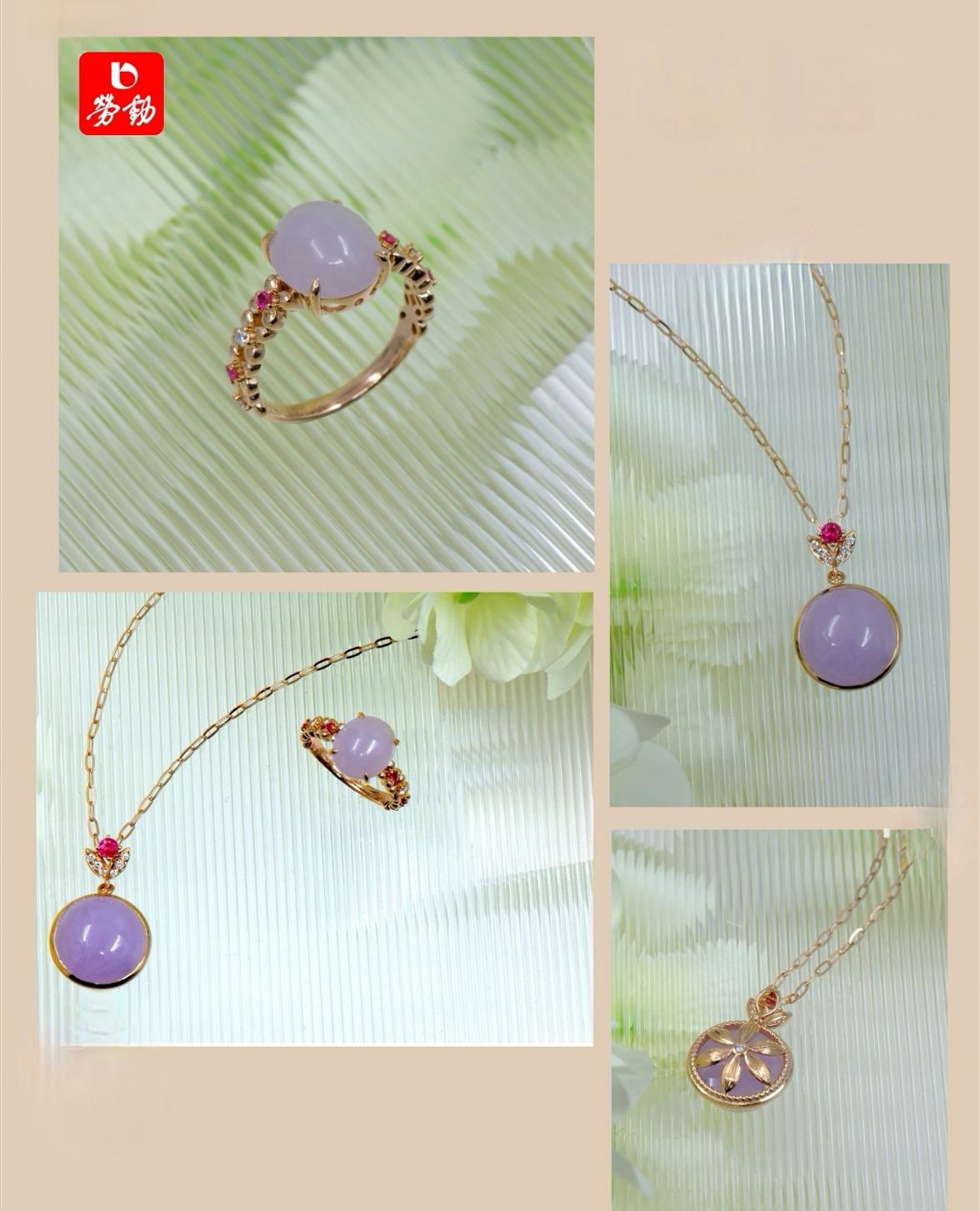 紫翡套件仿佛将那份淡淡的丁香之美凝固成有形之美,让人们在其中感受到深深的爱意。紫翡套件,是老凤祥对传统文化的独特诠释,也是对永恒爱情的美好寄托。