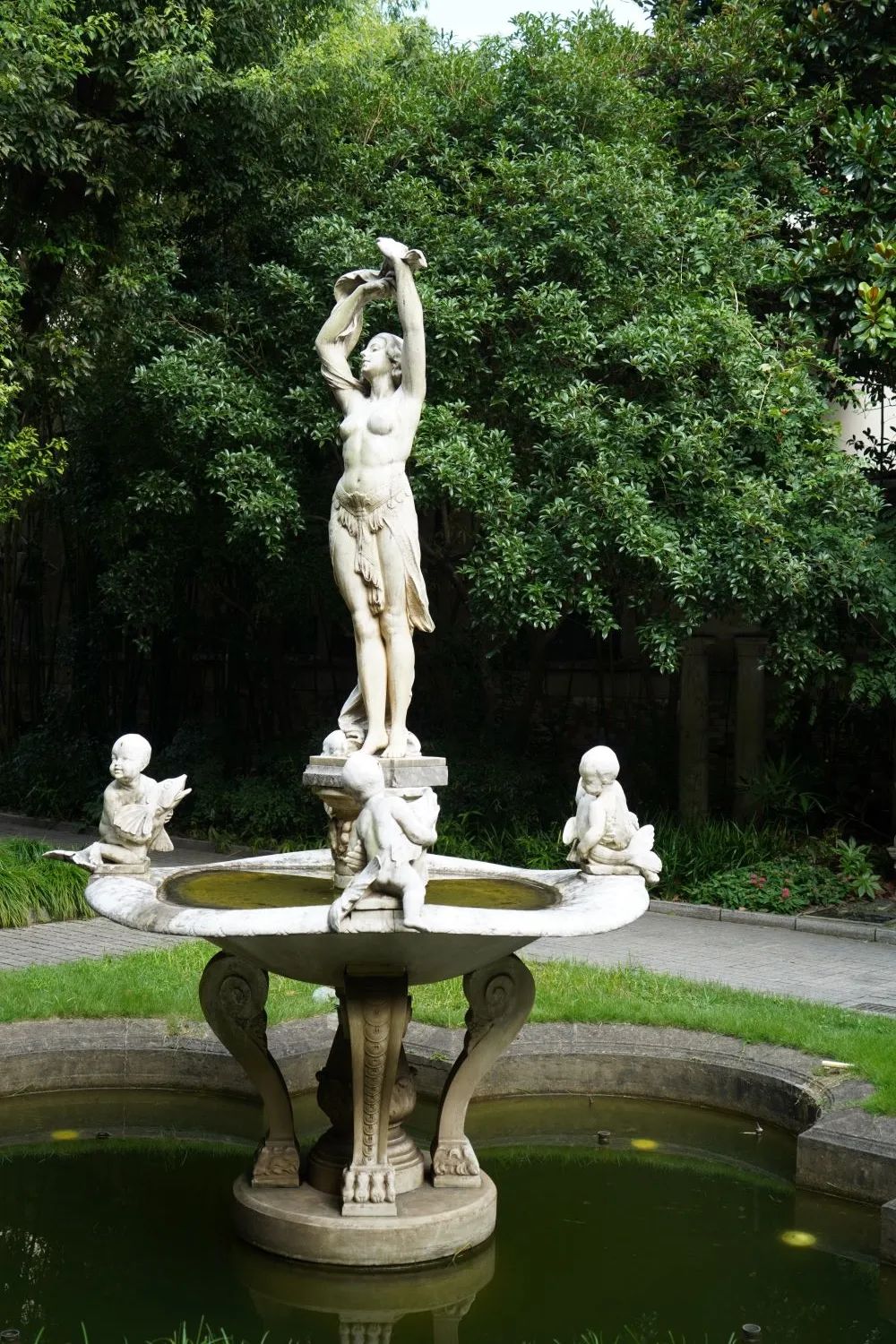 邬达克在庄重的建筑中注入了雅致妩媚,设计和施工皆堪称惊艳。庭院里,还有上海“最美喷泉”,中央立有希腊公主普绪赫和爱神丘比特的雕像。