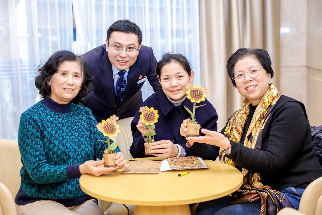花卉扮靓,红火迎新。这儿的“劳动者港湾”里,手工木艺繁花,寓意繁花绽放,美丽如锦;老上海定胜糕,意祝心有所期,今朝定胜。阿姨爷叔们喜笑颜开,连连夸赞“老灵额”。