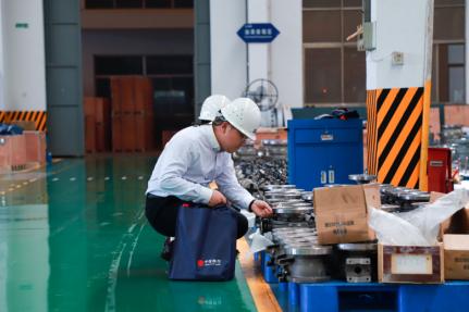 江苏盐电阀门有限公司,是集科研、生产、销售于一体的高品质工业阀门专业制造商,入选国家级专精特新“小巨人”企业。图为中信银行南京分行辖内盐城分行客户经理在车间实地调查,为客户提供授信支持,助力客户做大做强,拓展海外市场。