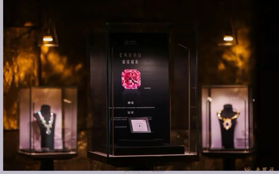 本次珍品展汇集了百余件由老凤祥中国工艺美术大师们领衔设计的精品佳作与老凤祥历年收藏的极品珍藏钻石,以“璀璨天成”“极致匠心”“盛世典藏”三大篇章,运用交互光影技术,结合展示、科普、互动,让参观者得以沉浸式感受天然钻石的瑰丽珍稀与闪耀夺目:价值超亿元的顶级粉钻璀璨亮相、各种大克拉异型钻齐聚一堂,博物馆馆藏“金钻老爷车”惊艳亮现。