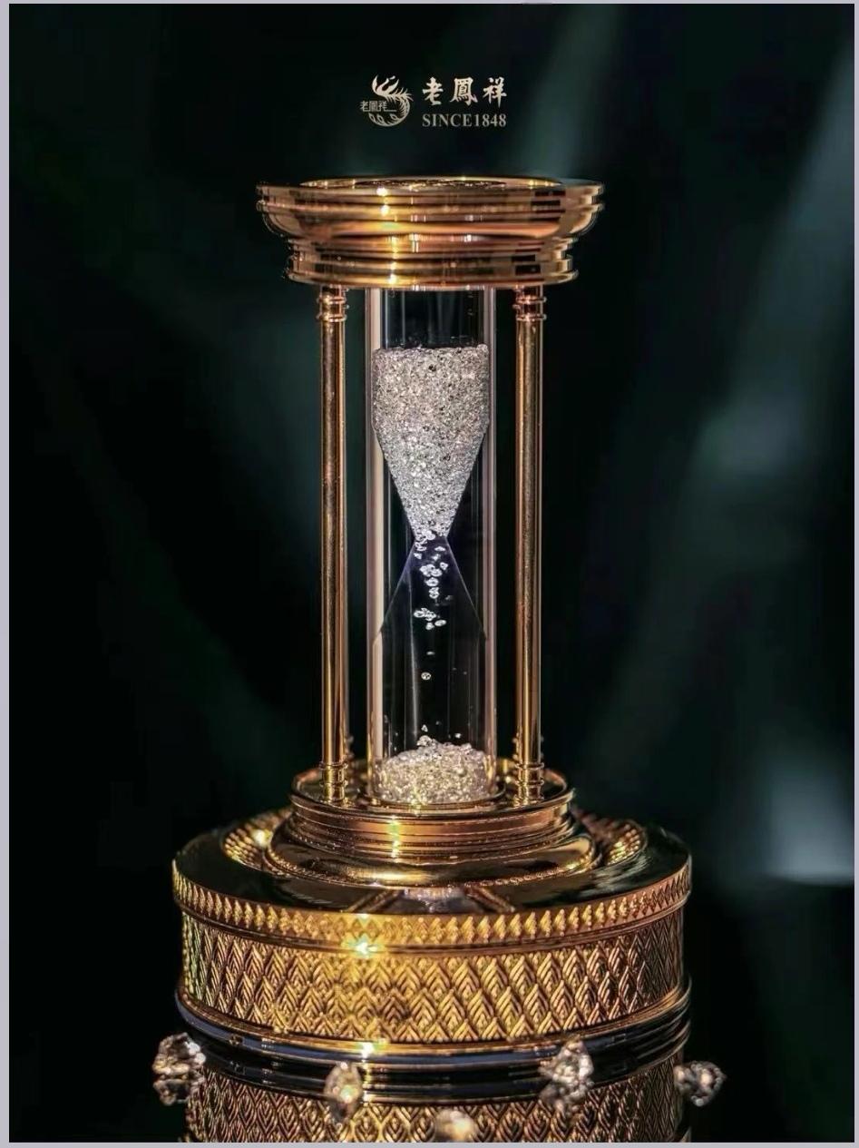 作为拥有百年荣耀的老凤祥品牌,拥有众多经典藏品,也是品牌的沉淀和积累:亿元级典藏粉钻璀璨耀世;中国第一枚钻石铂金戒指复刻版经典亮相;老凤祥175周年华诞纪念版天然钻石沙漏,以190克拉钻石将时光流逝生动展现。