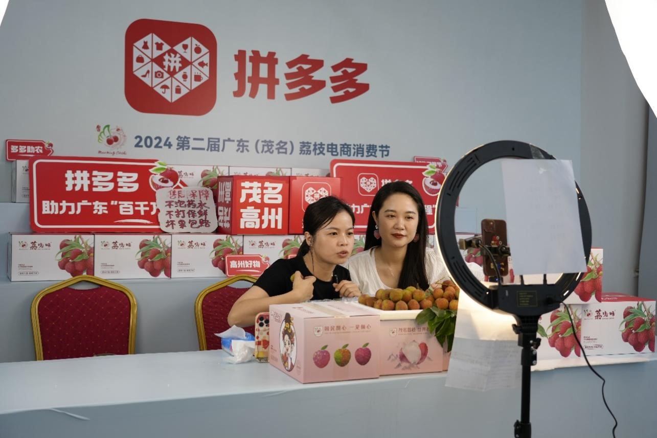作为荔枝电商消费节的组成部分,拼多多等电商平台积极参与茂名好农货的线上推介,通过直播带货、百亿补贴等形式,助力当地打好销售组合拳。参与直播的产地商家表示,受益于拼多多平台的流量扶持等惠农政策,荔枝发货量增长了20%左右。
