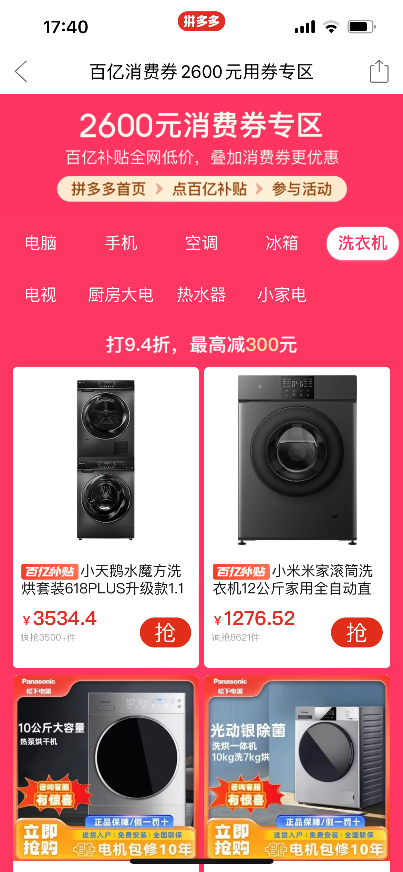 ▲首个国家换新补贴专区登陆拼多多百亿补贴,最高补贴2000元