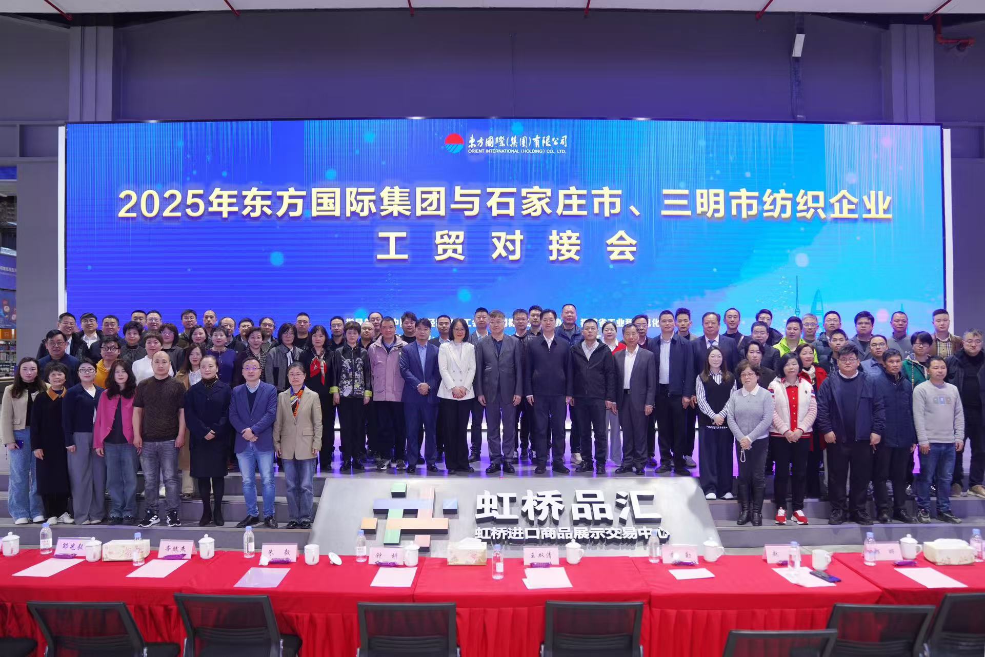 近日,2025年东方国际集团与石家庄市、三明市纺织企业工贸对接会在虹桥品汇举行。连续三年的对接会,见证了合作机会的诞生、企业间的深度融合,也见证了技术革新的快速推进。今年,对接会继续扩容“朋友圈”,扩大影响力,吸引了来自石家庄市的20家纺织企业、三明市的11家纺织企业和12家食品企业、东方国际集团下属19家二级企业参会。新朋老友齐聚,在这个孕育商机和希望的合作舞台上,通过新品首发、合作签约、商贸洽谈等精心设计的环节,搭建起企业携手共进、共谋发展的重要桥梁。