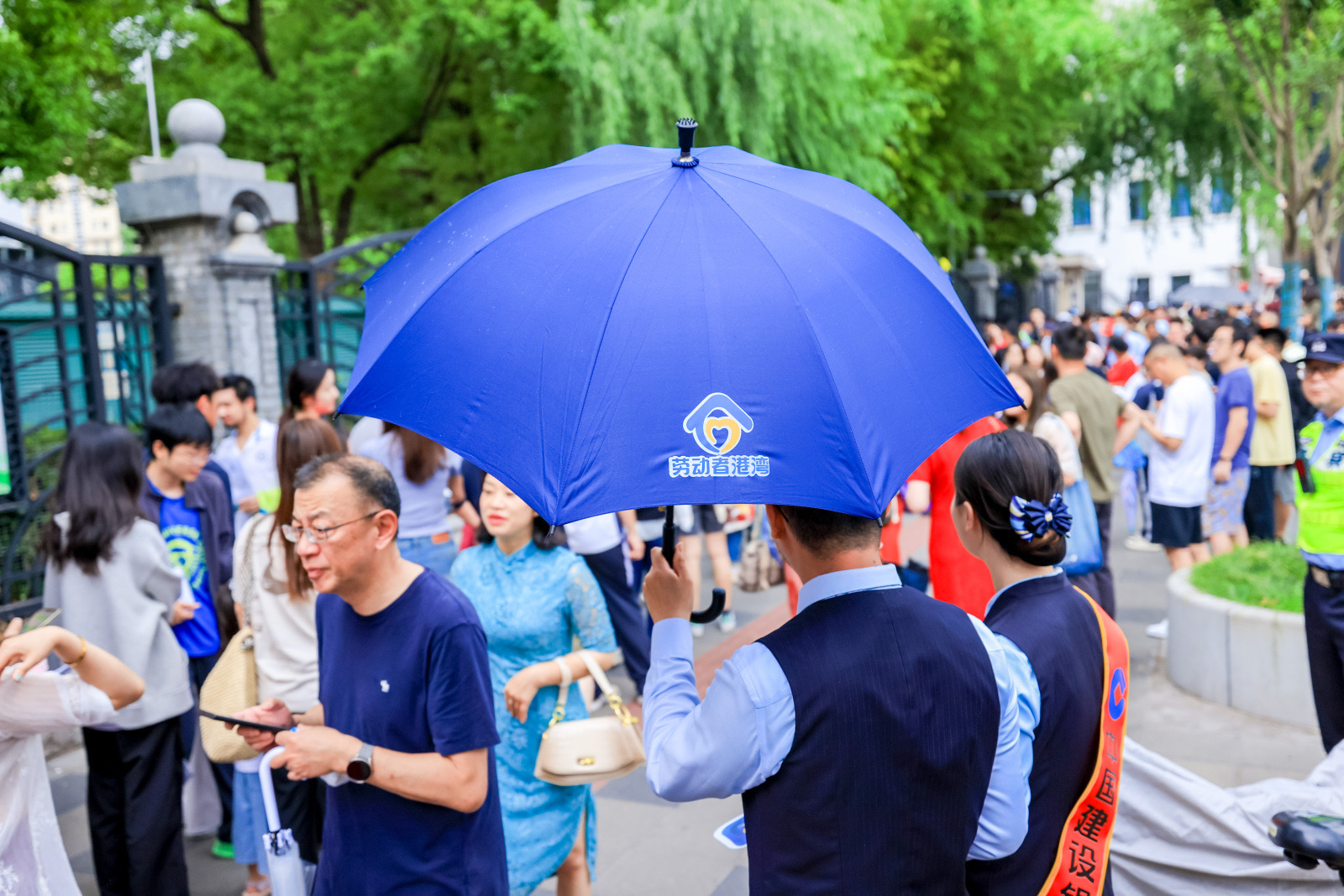 在这场与天气赛跑的助考行动中,建行上海市分行“劳动者港湾”以细节为经纬,织就一张温暖的守护网络:为候考家长开辟专属休憩空间,在网点入口处亮起蓝色标识灯箱,让雨幕中的“劳动者港湾”成为最安心的坐标。张富清金融服务队队员们踩着浸满雨水的鞋袜穿梭于考场与网点之间,把雨具递到赶路人的手中,将助考物资装进考生背包,用湿透的后背为家长们撑起临时遮雨棚。