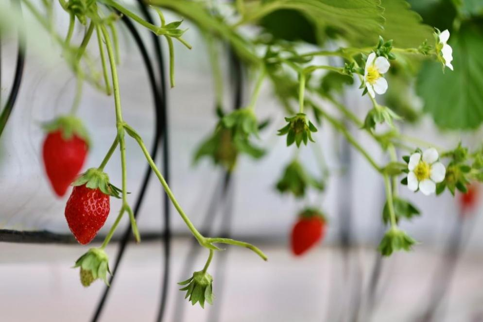 能耗方面,赛博农人队将上届比赛研发的多源节能调控技术“发扬光大”,通过引入外界冷源降温,使空调能耗降低40%以上,同时通过冷凝水回收,将水分生产效率提高300%以上。此外,他们还建立与草莓“生物钟”相匹配的LED光照策略,找到最佳光照时长和强度,既显著提高草莓的花芽质量,提升产量和品质,又“让电费花得更值”。