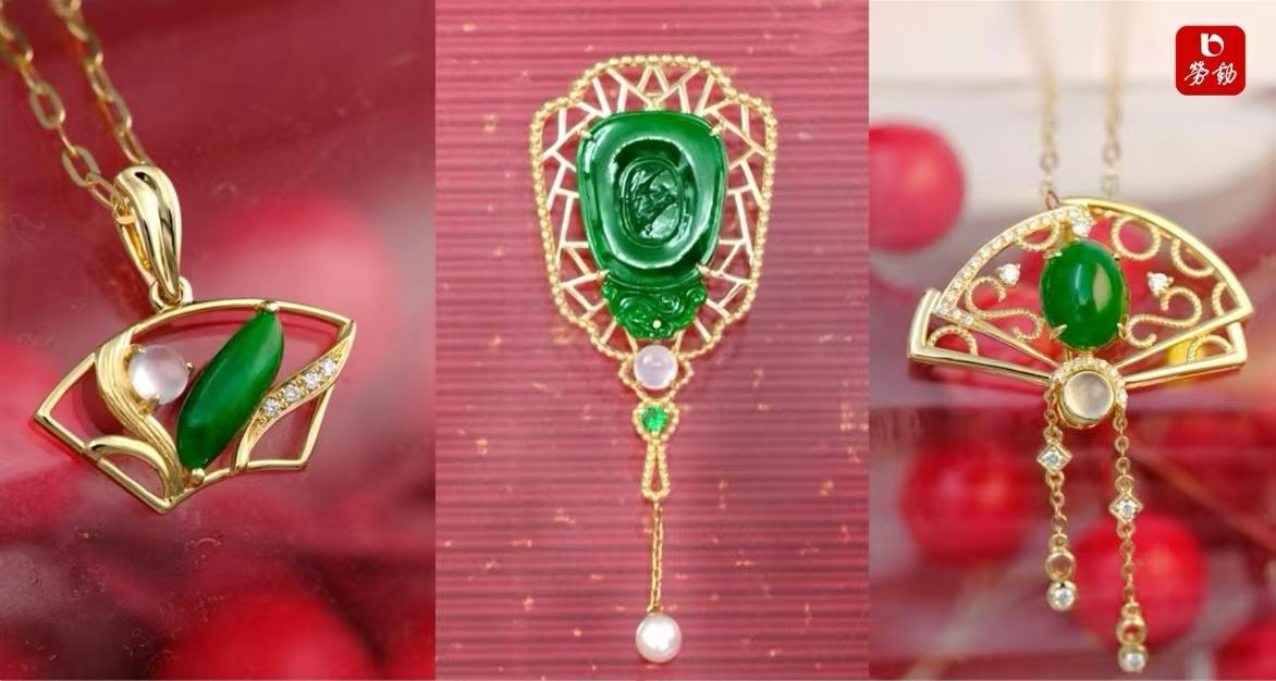 老凤祥三把扇形翡翠挂件以宋扇为骨,翡翠为魂,工艺为韵,在一方扇形天地里,复刻宋人的雅致风骨,让千年审美在颈间流转生香。