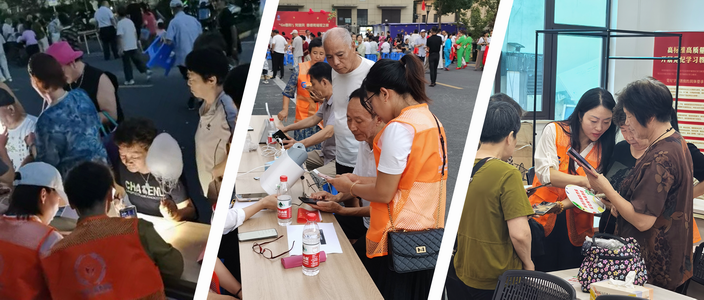 这里,有几位“健康社区促进员”(HCP),正携带着专业设备,专注地为排队的居民进行人体压力检测和眼底病变筛查。从午后阳光明媚到暮色渐沉,这场设在团圆盛会里的健康筛查服务却从未间断。尤为引人注目的是,随着下班高峰的到来,不少中青年居民也纷纷加入检测队伍,利用晚会开始前的闲暇,了解自身在工作重压下的身体状况。