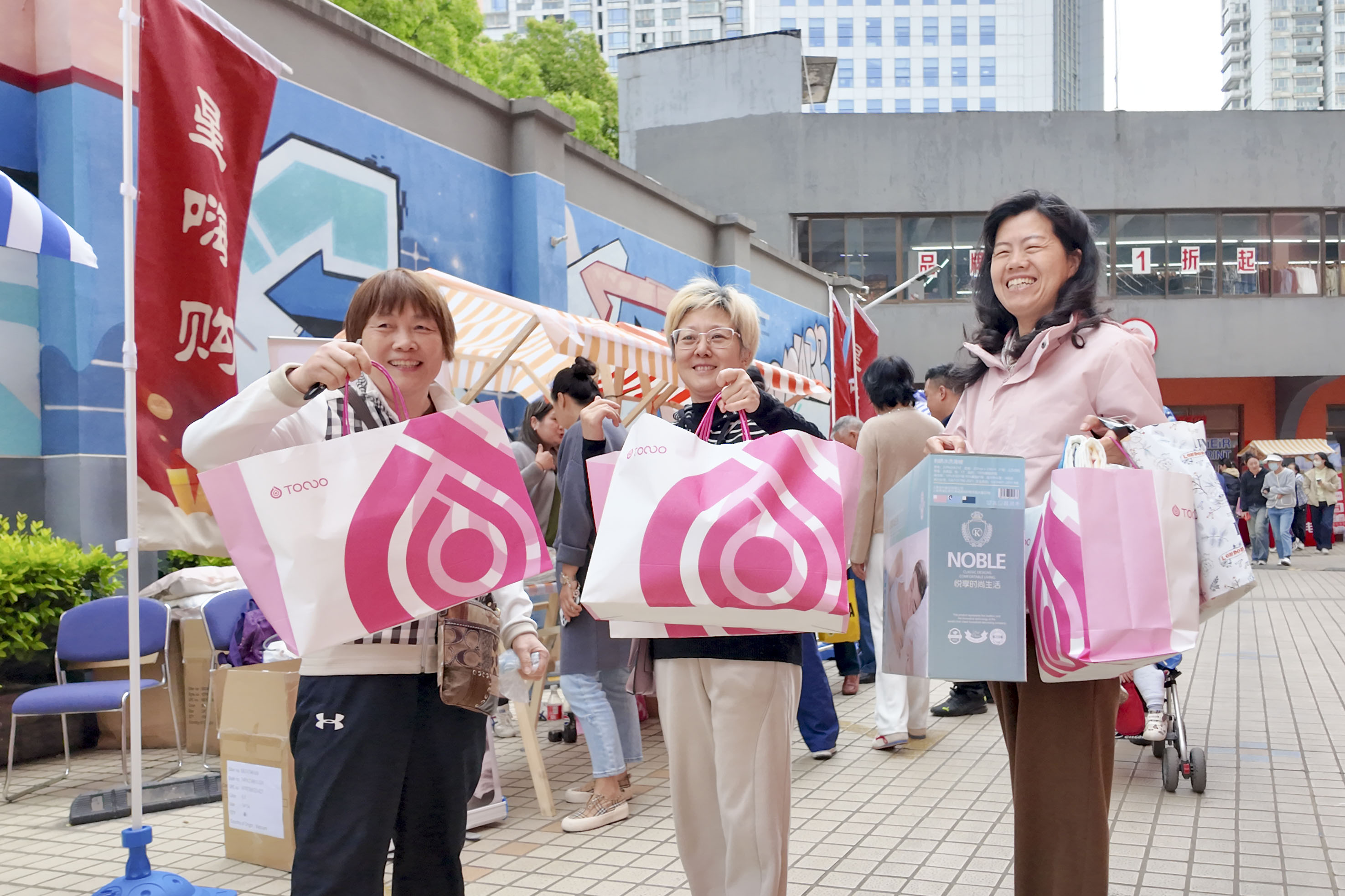 “小到零食、爆款日用品,大到体验驾驶知名新能源品牌汽车,这对年轻人很有吸引力。”一位白领参与试驾活动后兴奋地说。“40多岁的女性顾客,在市集一次性买了8件不同尺码、颜色的同款裤子,她不仅自己穿还要送朋友。”园区里三枪门店店员李女士说,每次精选多个畅销品类参加市集,保证质量好又优惠,加上是国民老品牌,很受顾客青睐。“门店通过参与活动扩大了三枪品牌知名度,带来了更多销售量。也借此与其他企业相互学习,积累市场推广经验。”经营快印业务的朱小姐扎根园区十多年了,她表示,近期的市集活动为店里吸引了更多潜在客户,同时店里也参与了活动现场布置、印刷品制作等,与园区互相支持。