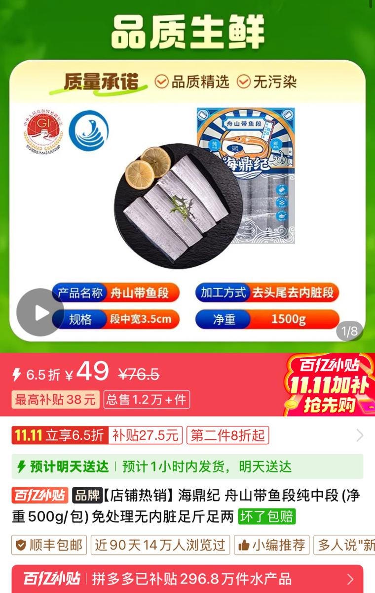 如今,在拼多多带鱼类目排行榜上,前几名里,有一大半都是“海鼎纪”的产品。“去年,我们在拼多多上的销售额不足1000万元,今年应该是能翻倍的。”