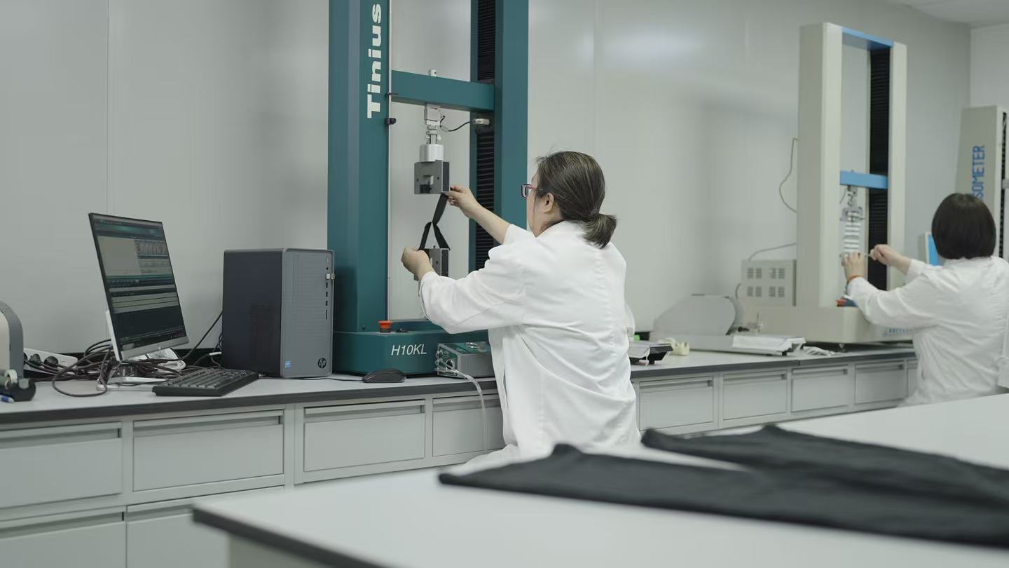 走进位于愚园路上的新联纺公司,设计中心、打样中心、检测中心忙而有序,大家正在为明年春天的样衣设计和制作忙碌着。为了增强企业竞争力,2010年公司建立三大中心,2015年成立面料开发中心,形成l完善的面料研发、服装打样设计以及纺织品测试体系。