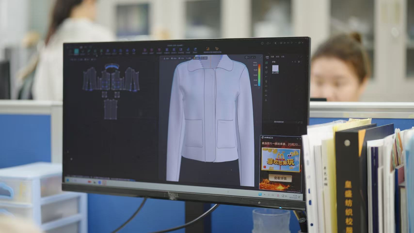 “以往是客户提出样衣设计思路,我们的设计师再进行设计,然后是加工制作。”设计中心一位工作人员讲道,依托全流程的数智化,已经建立了快速反应打样机制。“先前一件样衣的成本可能是成衣的几十倍。通过数字化服装设计系统,现在设计师可以形成快速打版、快速修改并动态展示其设计成果,大大节省了成本,还能够靠前一步,为客户主动提供多样化的设计和流行趋势预测,在选样会上,最大限度赢得机会。”