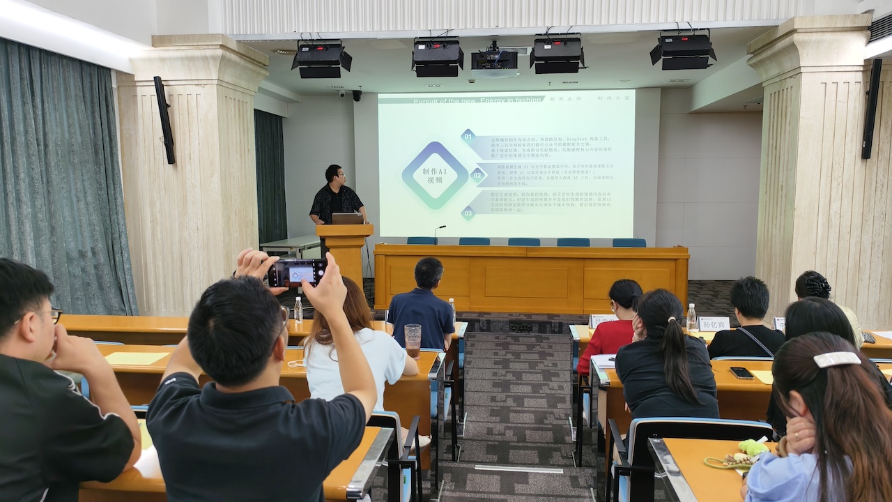 通过线下集中授课、实践操作与小组互动相结合等方式,教职工们逐渐从“不敢用、不会用”转向“主动用、善于用”。“培训让我们从‘数字新手’成长为‘AI熟练工’,真正体会到AI为教育教学工作赋能。”大家说道。系列培训从2024年起延续至2025年,累计参与教职工近百人,在时尚教育中心内营造了“人人学数智、人人用数智”的浓厚氛围,为今年开展的竞赛打下坚实的技术基础。