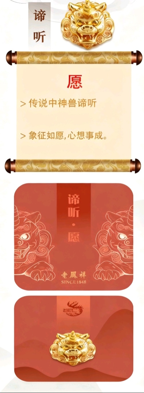 谛听本是神兽,能“听人心底真言,辨世间虚妄”。老凤祥将它凝进金饰里,不是为了复刻一尊瑞兽,而是把中国人刻在骨里的“愿力”,做成了可贴身的信物。古人说“心有所愿,兽能察之”,如今我们把这枚金兽戴在腕间,就像把“辨真心、守善念”的古训,系成了随身的提醒。