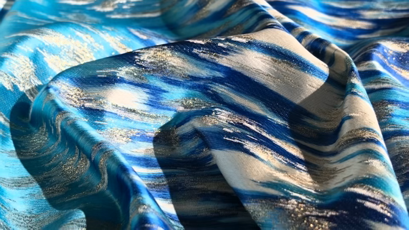 通过高精度喷印技术,在经线上直接实现图案的数字化呈现,不仅大幅提升了生产效率,更解放了图案设计的自由度。设计师可以在电脑上绘制细腻繁复的纹样,甚至融入当代艺术语言,再通过数码设备精准转移至丝线。“我们做的不是取代,而是赋能。”与此同时,项目团队引入现代织造设备与环保后整理工艺,在延续梭织结构的基础上,融入提花、金银线等装饰工艺,更增强了面料的表现力与实用性。
