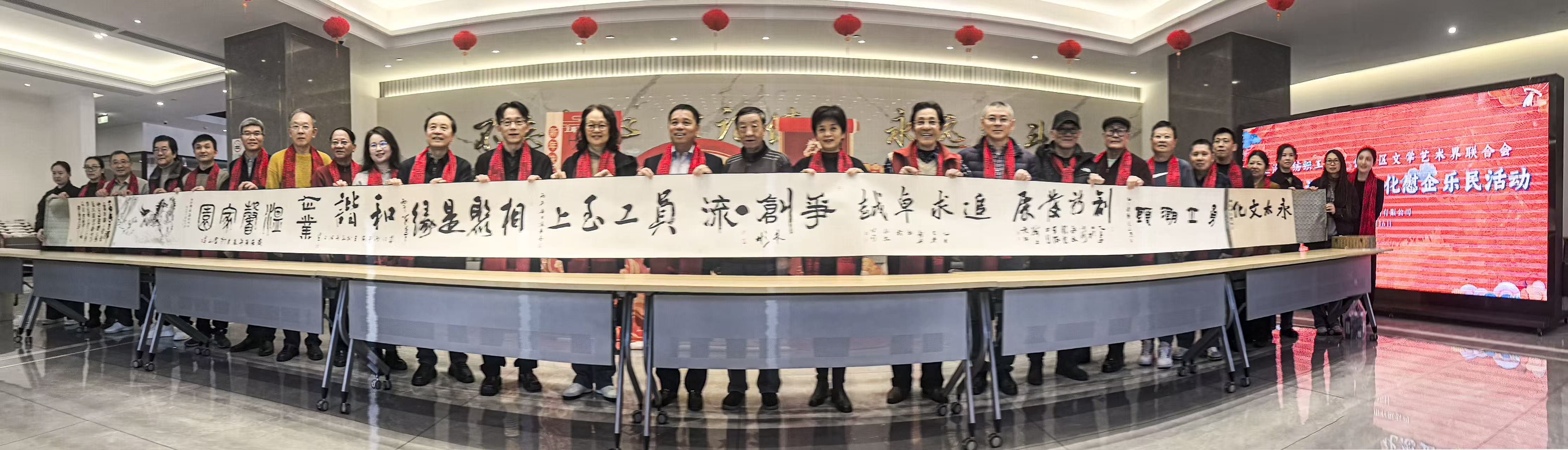 活动最激动人心的时刻,莫过于集体创作。金山区书法家协会与东方国际集团书画协会各选派五位书画家,联袂在一幅特制的十米宋锦长卷上挥毫泼墨。这不是简单的拼凑,而是一次心意相通的艺术共创。长卷之上,篆隶楷行草各体兼备,或苍劲如松,或秀雅如兰,共同书写着企业的核心理念。最后,工艺美术师黄绍民在卷尾绘上“双骏奔驰”图——这既是祝福企业腾飞,也象征着工会与企业如骏马并肩,在产业发展的道路上协同共进。