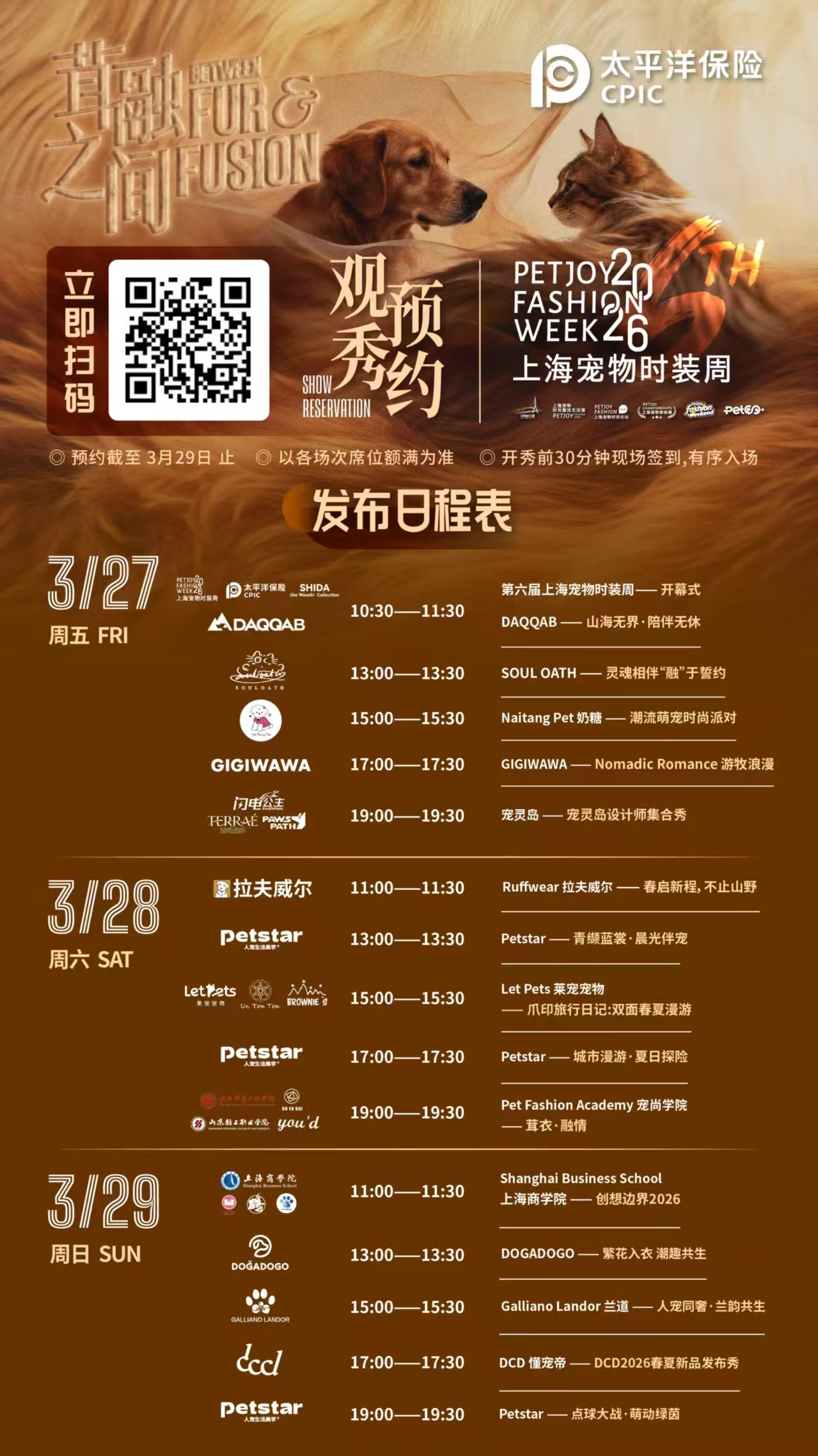 3月27日,由上海市文化和旅游局、东方国际(集团)有限公司作为指导单位,上海纺织时尚产业发展有限公司主办,上海国际时尚中心承办,中国太平洋保险作为战略合作伙伴的第六届上海宠物时装周将在上海国际时尚中心暖心启幕。无数萌宠将齐聚杨浦的工业遗存,与人类共同开启一场灵感迸发的时髦冒险,共同打造一个关于人与自然、城市与宠物和谐共生的未来生活样板。
