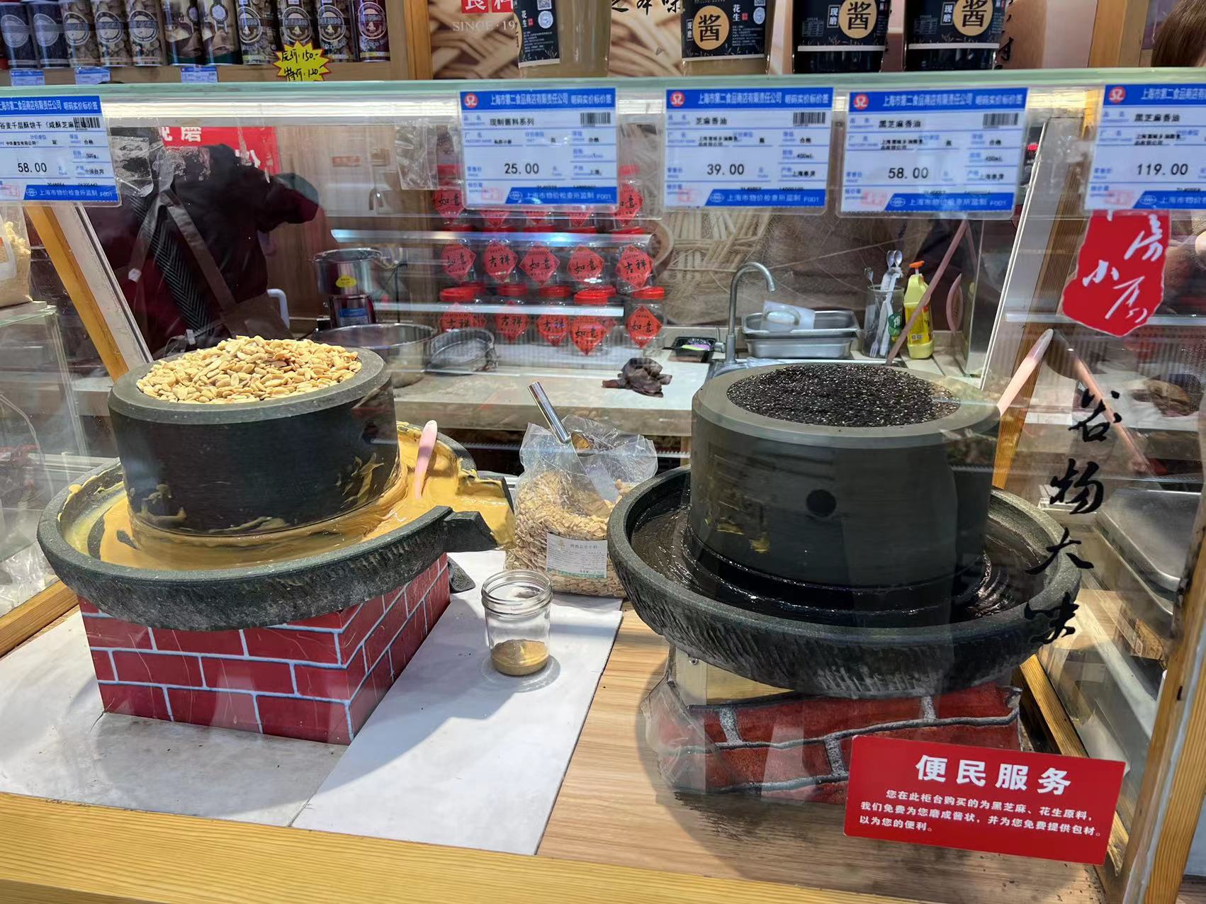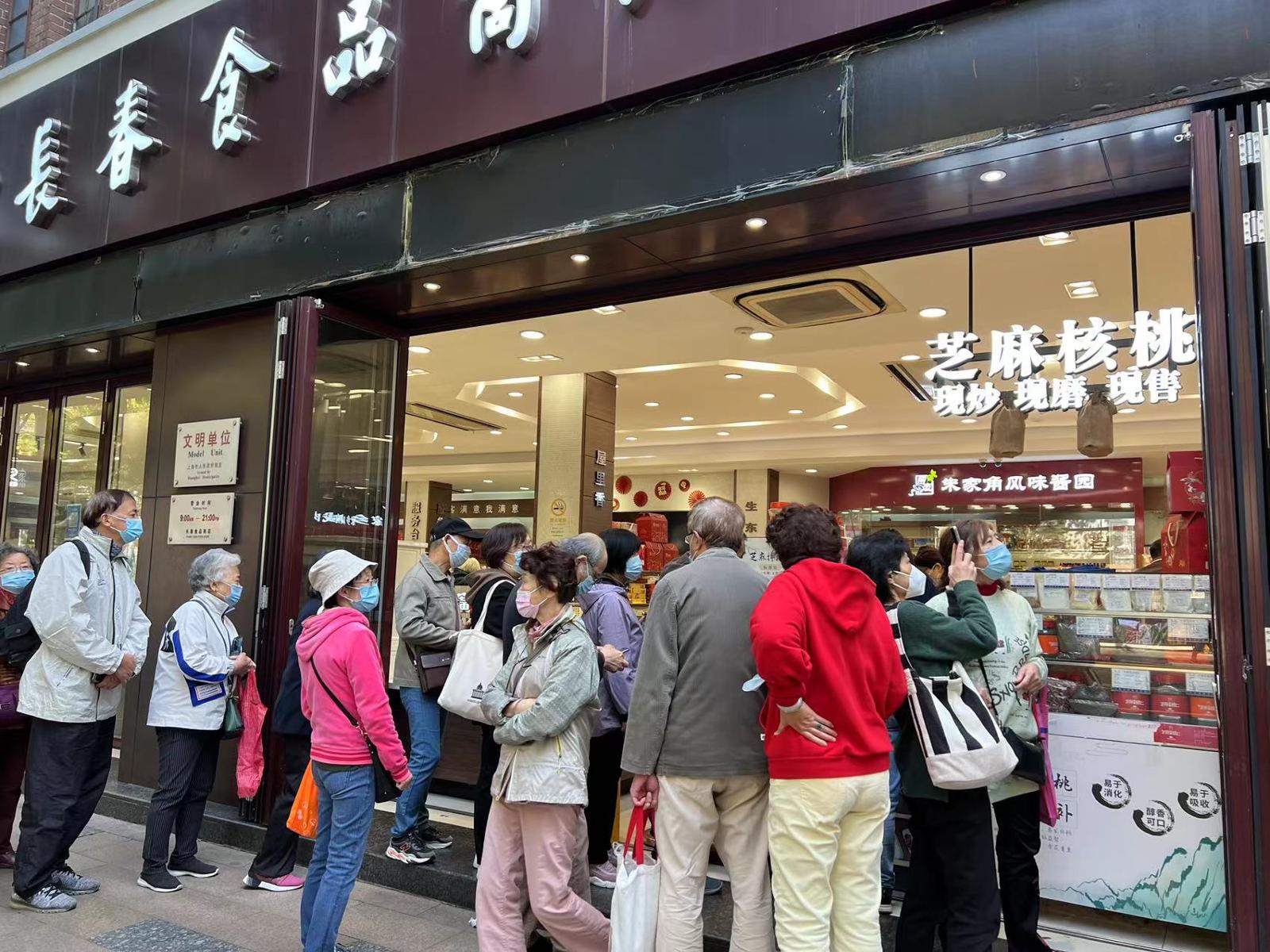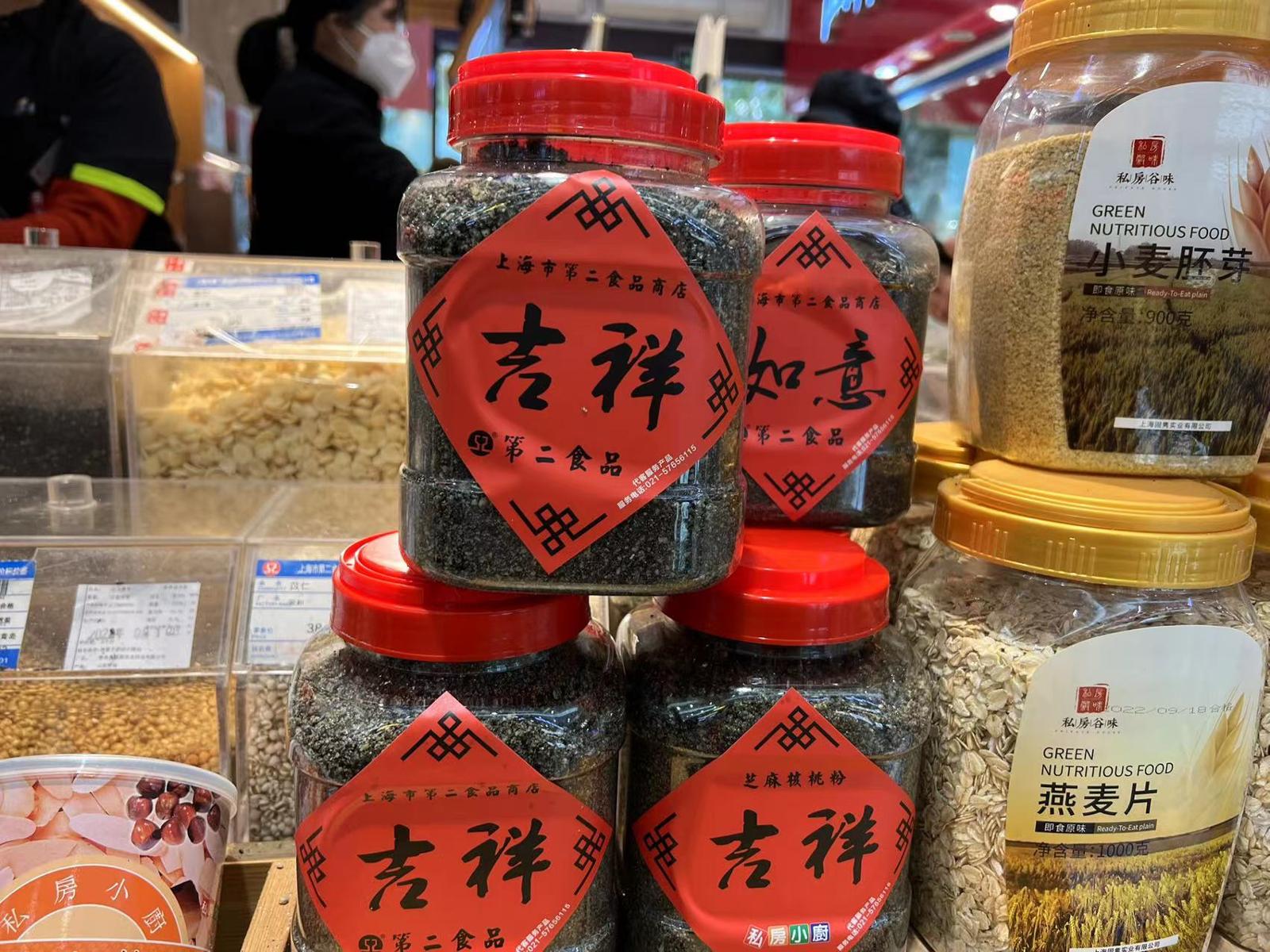 这几天,上海多家老字号食品店售卖现磨黑芝麻核桃粉进入黄金时段,排队购买的阿姨爷叔们又成了一道风景线。