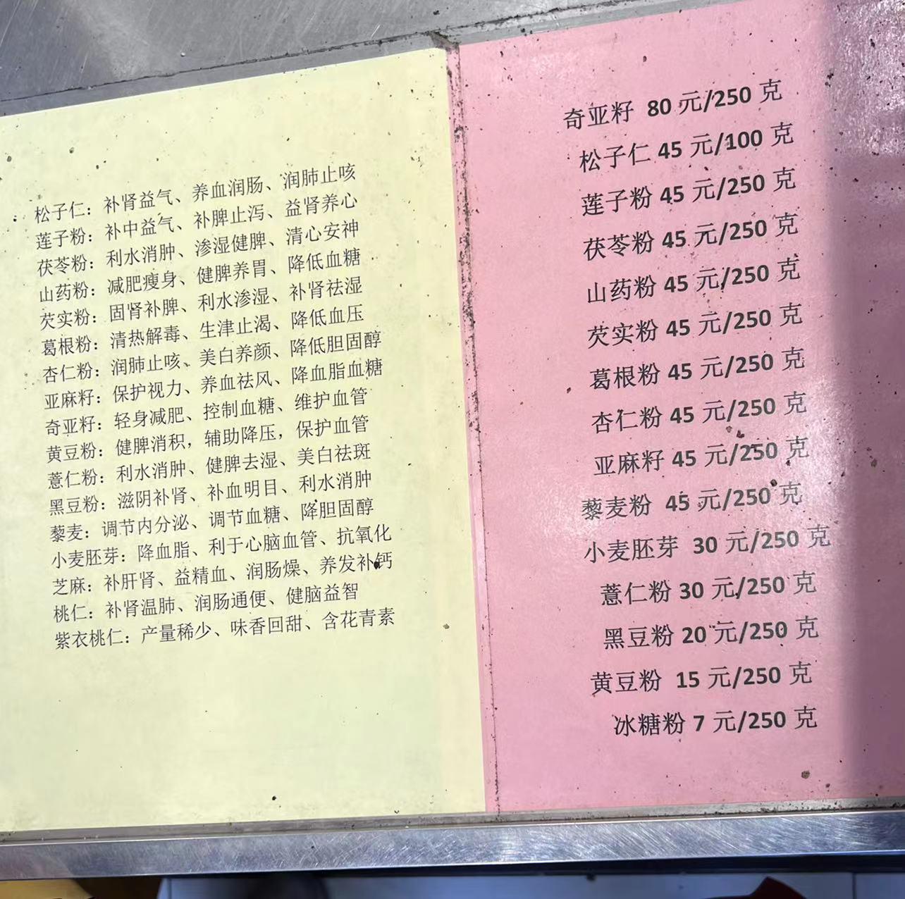 此外,现在芝麻核桃粉很流行DIY,个性化十足。除了甜度,还有松子仁、莲子粉、茯苓粉、山药粉、芡实粉、葛根粉、杏仁粉等10多种中医食疗推荐的配料,也能按需添加。