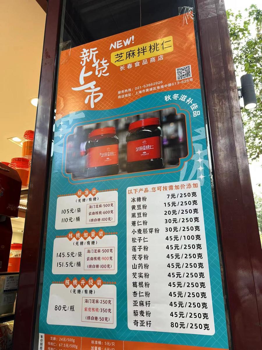 据悉,长春食品的现磨芝麻核桃粉除了芝麻500g+核桃600g配比的“标准装”,还应消费者需求推出了芝麻500g+核桃900g 的“核桃加量装”。此外,为吸引年轻消费者,店家还推出了芝麻250g+核桃350g 的“小罐装”,核桃选取了等级更高的紫皮核桃。