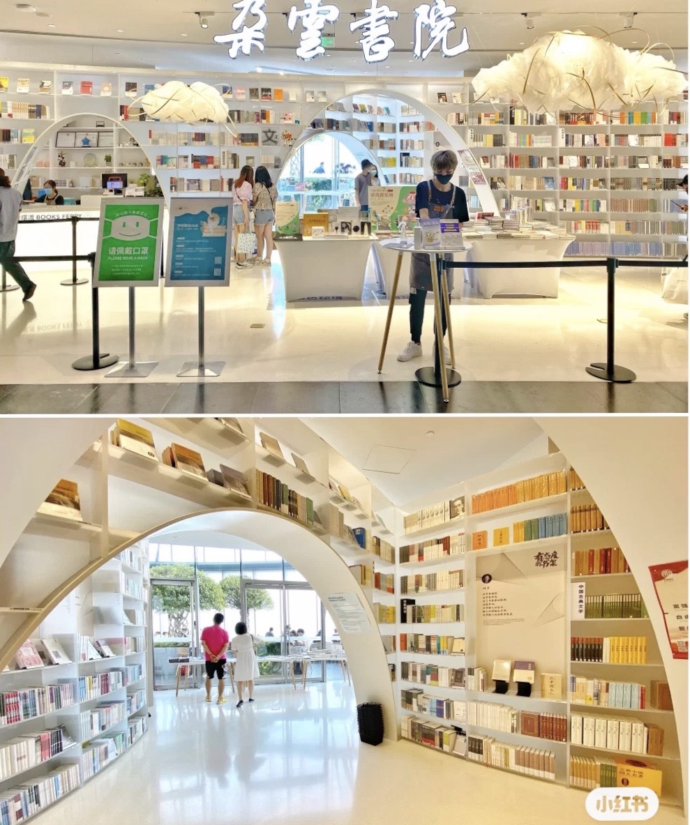 上海中心52层的朵云书院旗舰店,刚一进门阳光洒在洁白的拱形书架上,仿佛惊艳了时光。