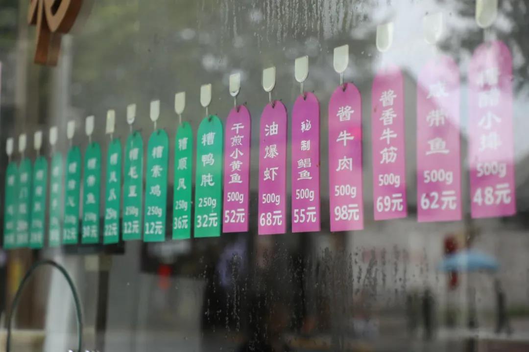 门口熟食小菜的窗口里,有很多品种,一列排开,爱吃酱门腔的小伙伴有福啦!油爆虾、酱汁肉、酱牛肉、酱鸭、红烧烤麸、甜甜糯糯的糖藕...夏天太热不想做饭,每一款都想拎走。