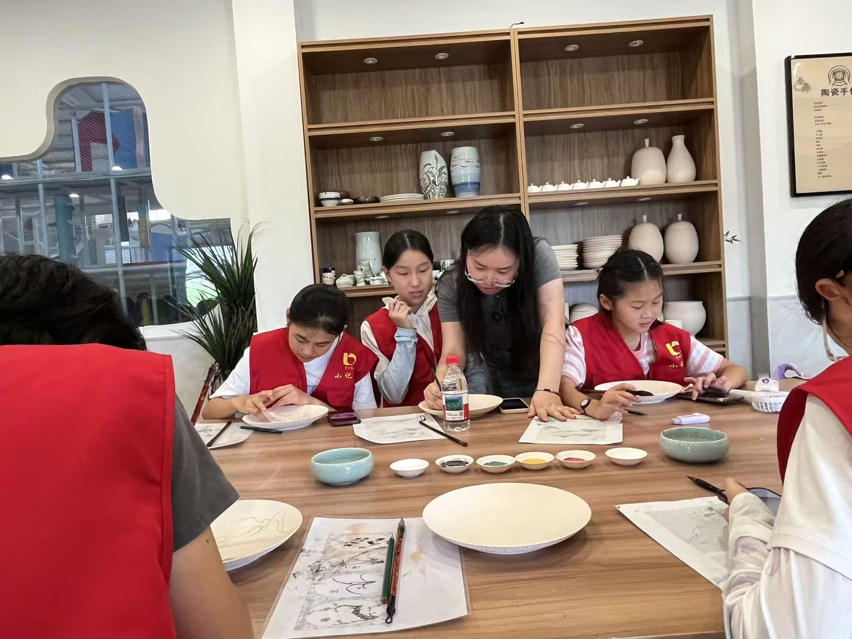 同学们还在园区工作室老师的带领下,亲身体验了茭白叶编结这项青浦区非遗文化以及陶瓷彩绘工艺。不少同学反映,当天在参与手作中感受到匠人品质,也在摄影老师的指导下收获更有视觉冲击力的照片和视频。