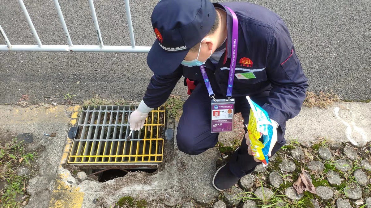 市爱国卫生运动委员会办公室介绍,会展中心餐饮单位鼠、蟑及绿化小飞虫问题是历届进博会病媒防制保障的重点。今年自进驻起,保障组连续一周针对会议、餐饮等重点点位开展突击灭鼠、灭蟑。截至11月3日,保障组共出动119组人员375人次,共巡查场馆35个次、餐饮场所399个次、环卫设施247个次,发现并处置问题451个。