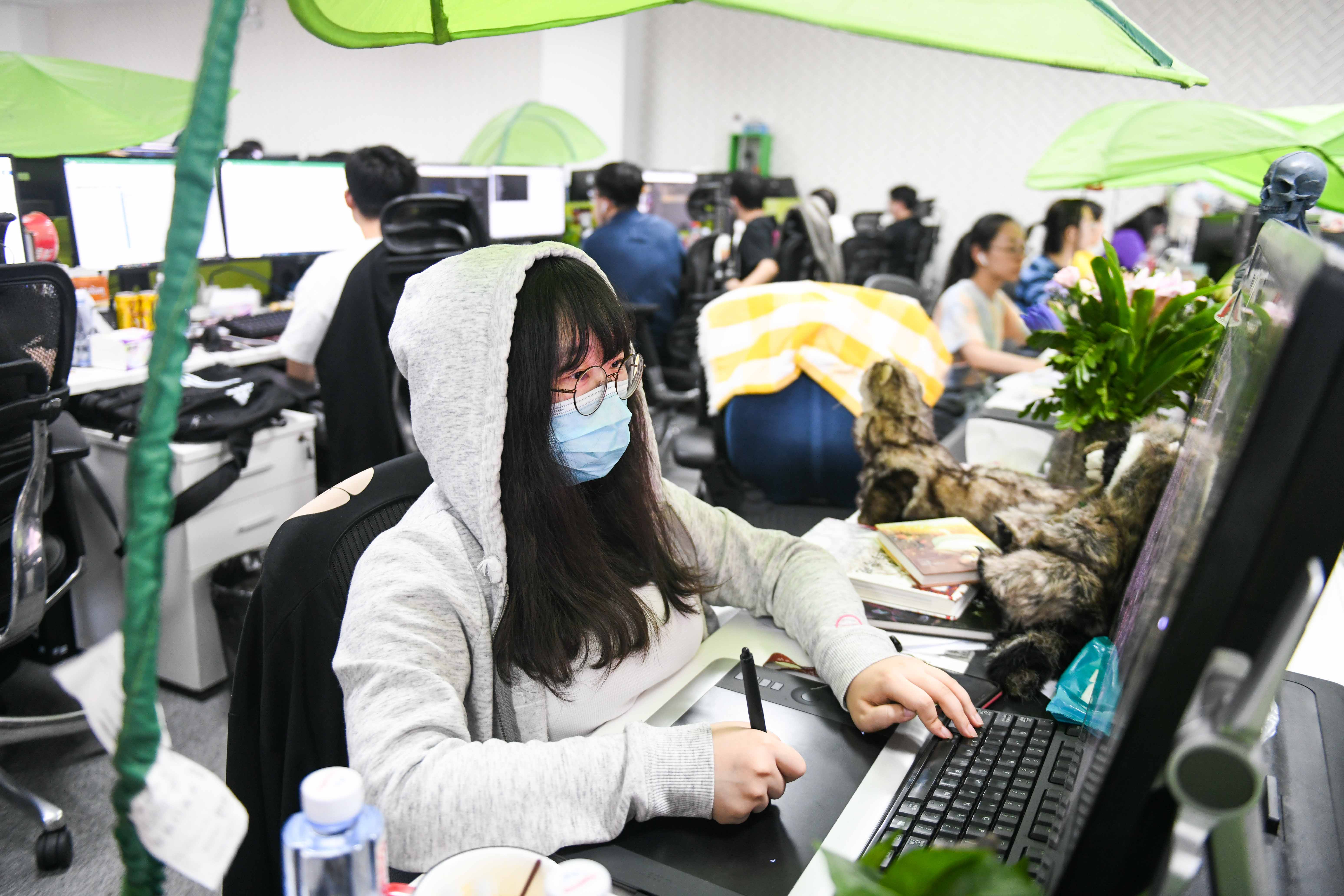 “银子”是一名可爱的小姑娘,工位上摆满了美术书籍和卡通人物,电脑屏幕上也都是元气满满的美少女。“银子”四川美术学院国画专业毕业,“国画没有什么对口专业吧,我们同学毕业后,好像很少有人还去从事这个。”