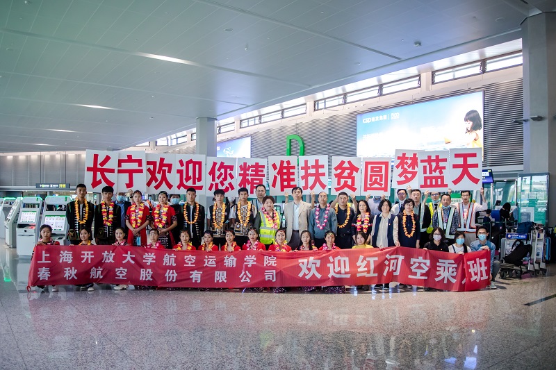 这些数据中就有上海为之而努力的一部分。就在今年的5月16日,作为春秋航空和上海开放大学联手招募的首批学员,同样是来自云南红河的18名孩子们也来到了上海,她们将在“空乘定制班”里完成专业学习,迎接未来飞上蓝天的航空梦。