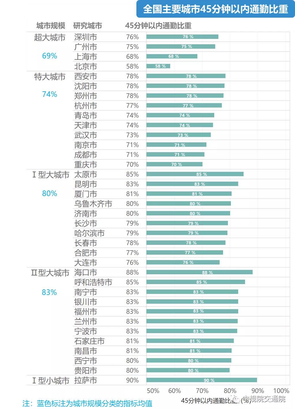 其中,超大城市单程大于60分钟的中心城区通勤人口比重18%,上海为19%。