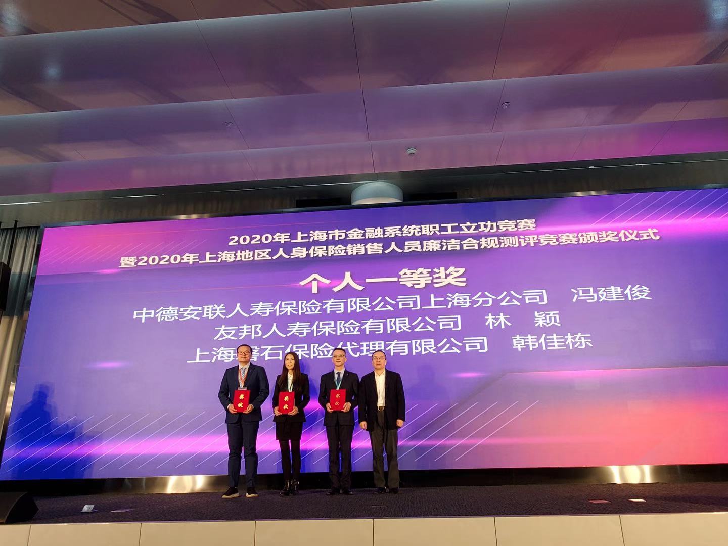 经过激烈角逐,来自中国平安人寿保险股份有限公司上海分公司的赵鹤获得了特等奖。中德安联冯建俊、友邦人寿林颖、上海磐石保险代理的韩佳栋获得了个人一等奖。