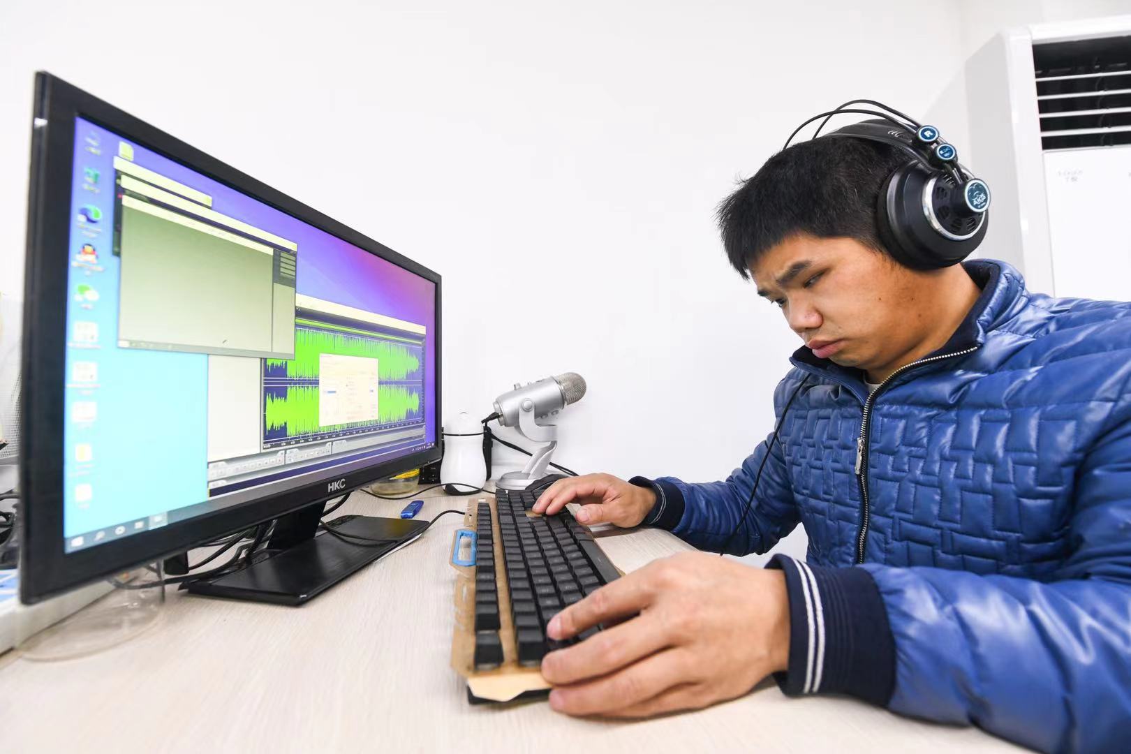 武汉小伙杨乐也是一位视障人员,视力仅有0.05的他只能感受到一丝丝的微光。2年前,他加入到了马寅青的团队之中,担任有声读物的后期制作。“这是我第一份名正言顺的工作。”杨乐告诉记者,在此之前,自己都只能在各种QQ群里“抢生意”,因为不正规,有时候连劳动所得的结算也无法得到保障。