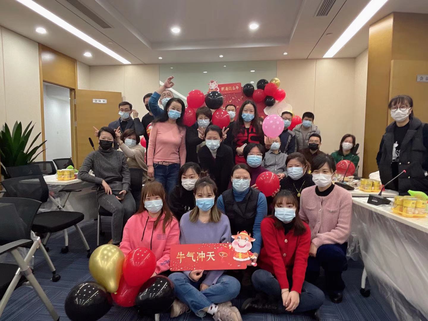“今年为响应市总工会的号召,切实关心好留沪过年职工,我们党委和工会积极组织发动各部门青年进行活动策划,自编自导,自己表演节目,让大家共同参与,通过翻彩绳子、扎酒瓶、翻纸牌、猜歌名等弄堂游戏让大家感受上海文化、上海的过年氛围,让留沪的员工感受到家的温暖,过一个欢乐、温暖的春节,也祝大家牛年牛气冲天、红红火火。”公司党委书记在新年贺词时说道。