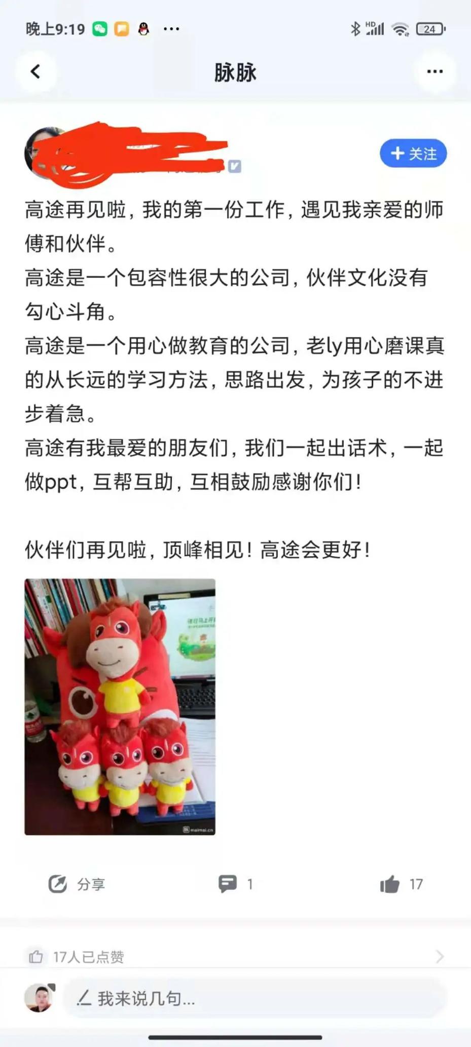 近期脉脉流出高途创始人陈向东老师的全员信: