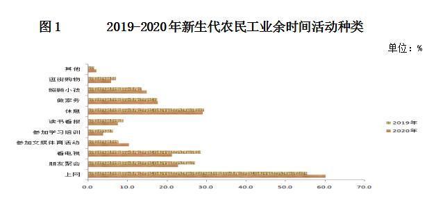 自我提升类活动减少。业余时间参加学习培训、读书看报的新生代农民工占比分别为3.8%和7.6%,比上年同期分别下降2.5个和1.3个百分点。