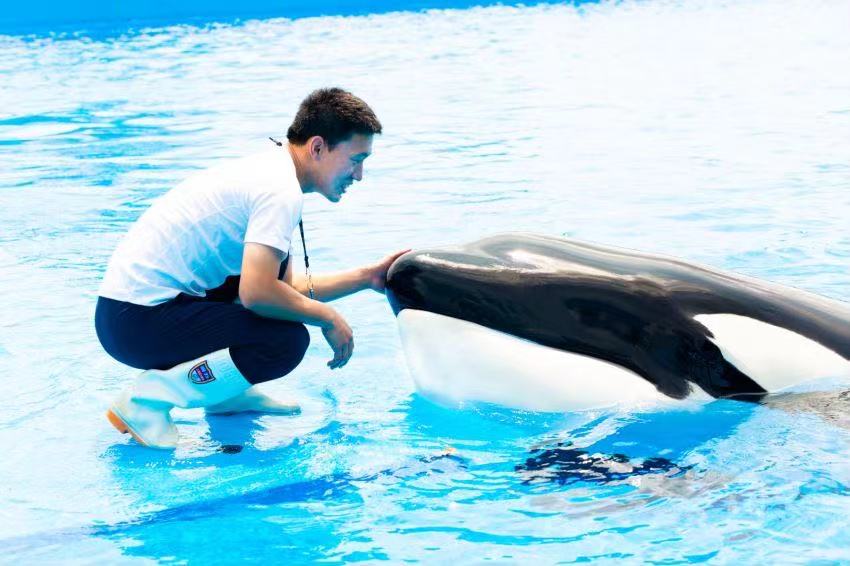 在上海临港的热门景点上海海昌海洋公园里,每天的虎鲸科普秀一直都是人气王。1991年出生的虎鲸保育员杨晓宇,入行已有8年多。为虎鲸制定餐食,确保水温、含盐量等指标达标,和虎鲸开展互动,是他每天的工作。虽然看似普通,但像这样的专业人才,在国内可谓屈指可数。