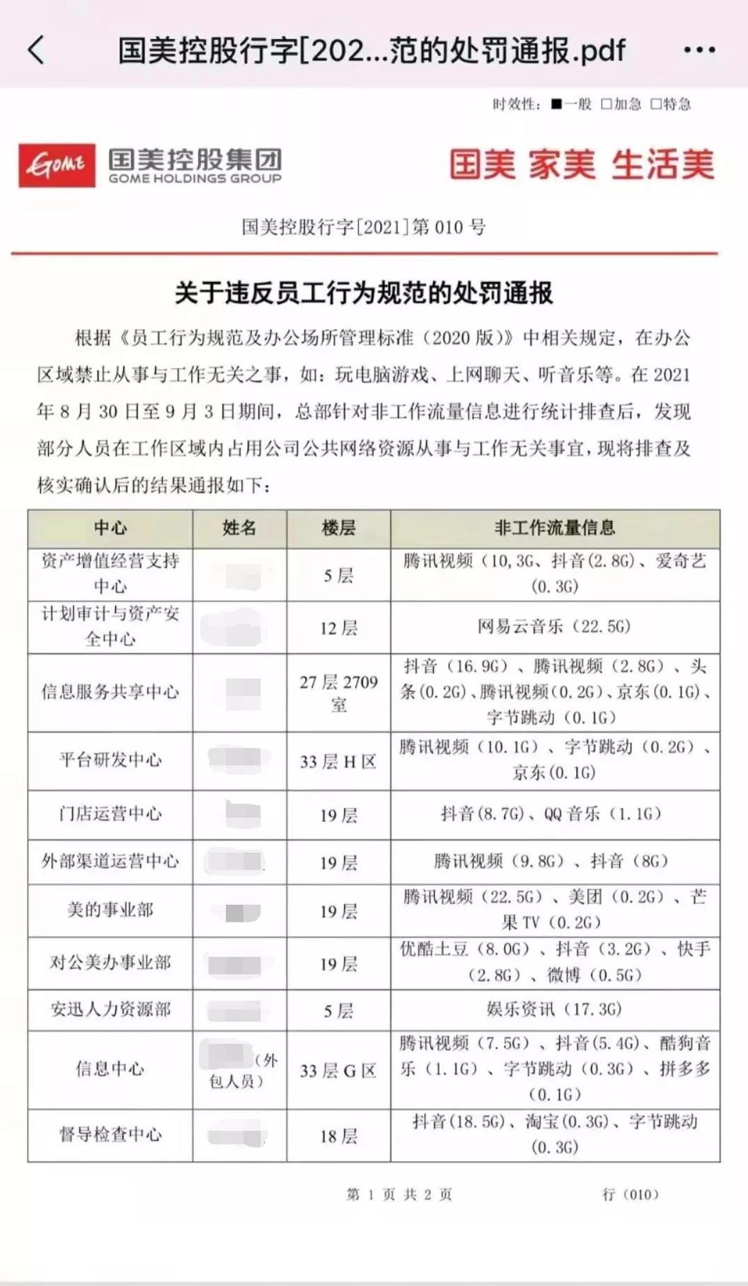 近日,一张来自国美的《关于违反员工行为规范的处罚通报》截图在网上流传,并登上微博热搜,上班刷视频、听音乐即被通报批评是否合理引发网友热议。