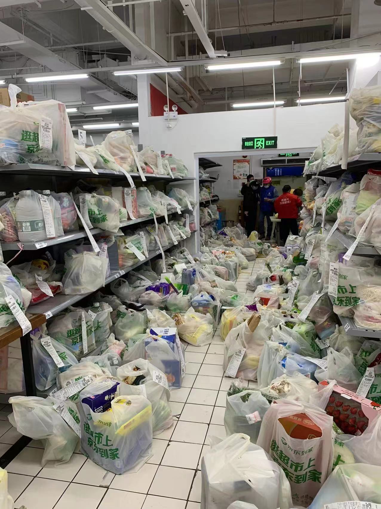这几天,由于凌云街道、长桥街道受等周边社区因疫情封控,李敏妹所在的沃尔玛凌云店电商部门,迎来了京东到家、小时购以及沃尔玛自有小程序等到家订单翻倍的暴涨。又因为担心回家被隔离,李敏妹和众多同事选择住在店里。